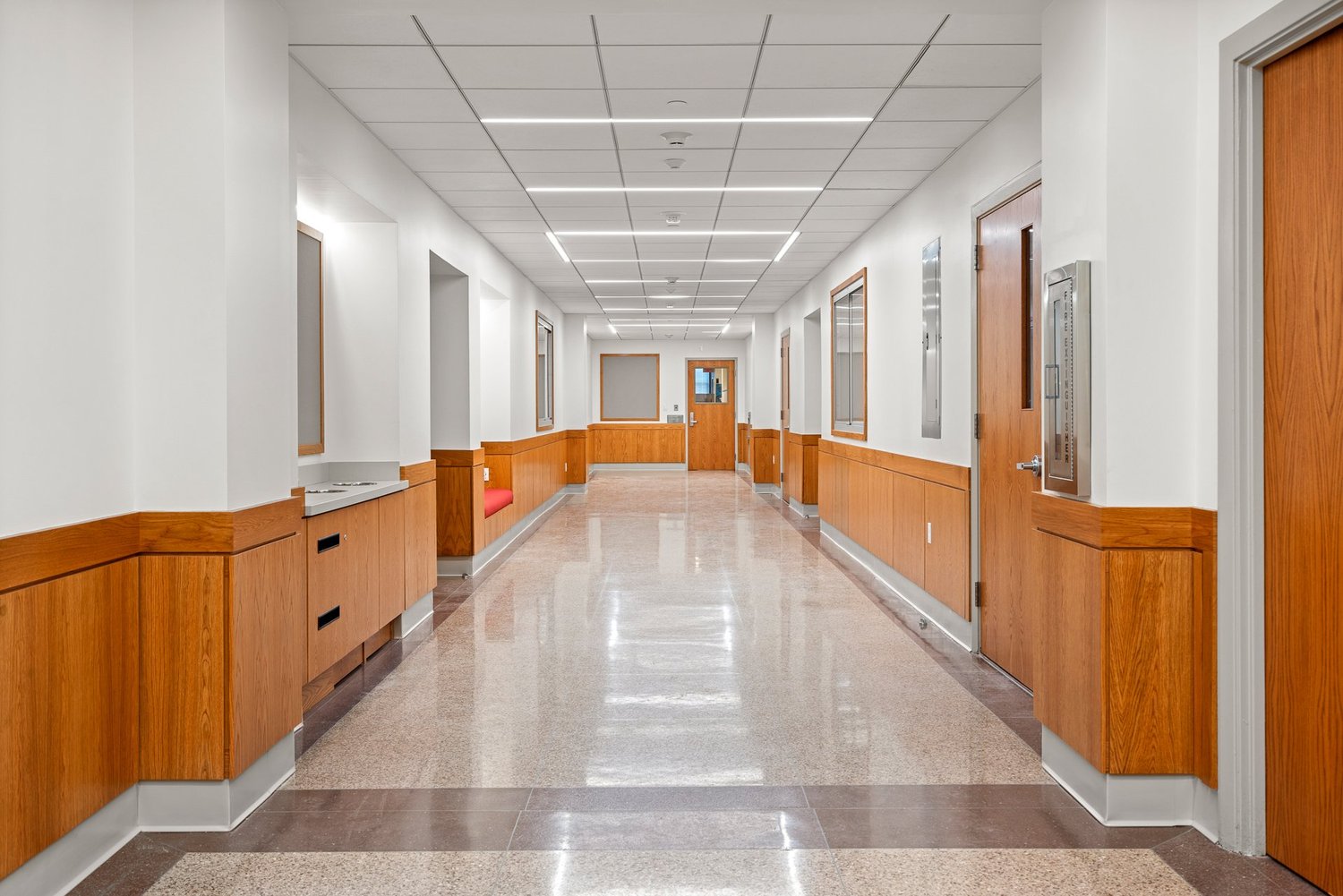 Summary: Interior renovation at the second-floor corridor and minor improvements at the third-floor corridor within the existing Lyons Hall Building on the BC Campus. Scope of work includes demolition, carpentry, joint sealants, doors, glass & glazing, gypsum board, ceilings, flooring, painting, specialties, plumbing, HVAC, and electrical.